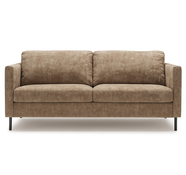 Bäddfunktionen gör det enkelt att förvandla soffan till en säng. Ryggkuddarna sitter kvar och fälls in under sängen när du öppnar upp funktionen. Madrassen är en bonellresår som ger stabil sovkomfort och är placerad skyddad på insidan av möbeln.