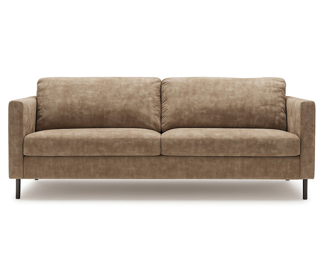 Som soffa ger Felix ett stabilt och följsamt stöd och är utformad för dagligt bruk. De svarta metallbenen skapar en ren och modern linje som passar särskilt bra till den svala beige färgen.