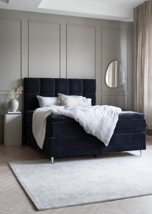 Alfheim kontinentalsäng är extra hög eftersom den har en kraftigare träram som ger en bättre stabilitet. Pocket fjädern i ramen erbjuder en mycket bättre komfort och stabilitet vilket innebär att man sover lugnare. Den extra tjocka bäddmadrassen är pikerad med en latex kärna. Man får tryckavlastning och en bra följsamhet med optimal komfort.