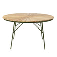Bordet är tillverkat i teak och pulverlackerad grön aluminium, och det är hopfällbart för enkel förvaring när det inte används.