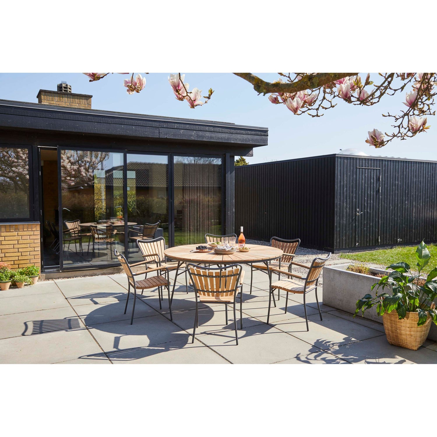 Ellen trädgårdsbord är en stilig blandning av naturlig teak och pulverlackerad aluminium. Inspirerad av 1950-talets design, ger dess mjuka linjer en harmonisk känsla i din trädgård.