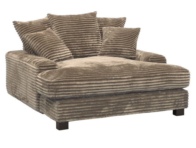 Freja är en extra djup loungefåtölj i XDeep utförande som bjuder in till riktig avkoppling. Klädseln är Angel Young Grey, ett mjukt och fluffigt manchestertyg med bred ribb som fångar ljuset och ger en varm grå ton med drag åt greige. Den generösa sittytan och de många kuddarna skapar en ombonad loungekänsla som passar perfekt för långa stunder med bok, film eller musik.
