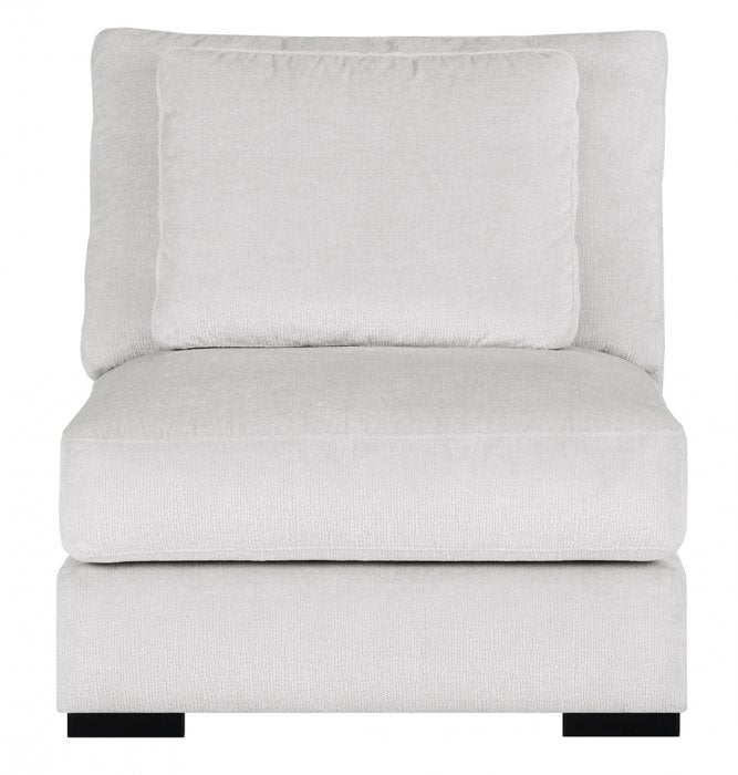 Denna fåtölj utan armstöd är ett mångsidigt komplement till övriga delar i serien. Den kan användas fristående som en nätt och flexibel sittplats eller byggas ihop med andra delar för att skapa en större sofflösning efter behov.