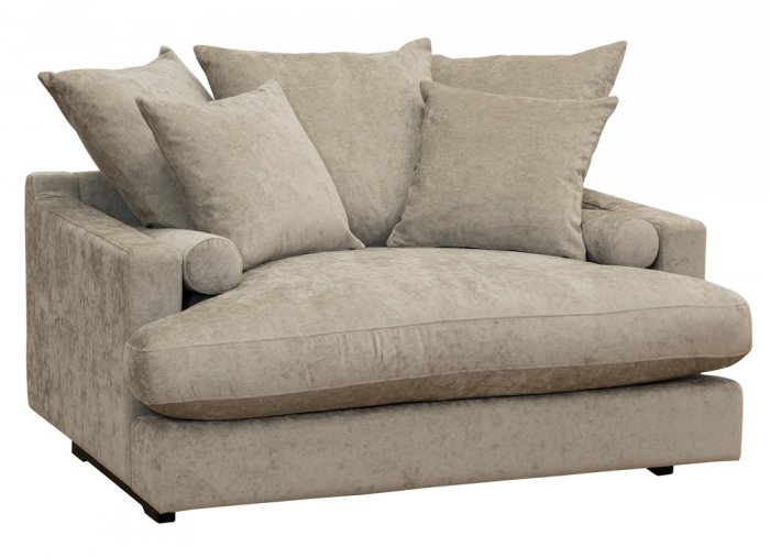 Sittdynan består av högelastiskt, formskuret kallskum som är svept med silikoniserad fiber och fjäder. Ryggdynorna är fyllda med silikoniserad fiber och fjäder. Dynorna är dessutom vändbara på fåtöljer med tygklädsel. Modellen har fast klädsel och kommer med avtagbara, tvättbara fodral (gäller ej läder). Obs, de två mindre kvadratiska armstödskuddarna ingår ej.