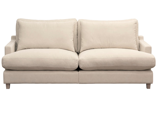 Sitt- och ryggdynorna består av högelastiskt, formskuret kallskum som är svept med silikoniserad fiber och fjäder. Du kan välja bland ett brett sortiment av både tyg- och läderklädslar, och tygklädseln kan fås som löst hängande eller fast på stommen. Soffbenen finns i flera klassiska träsorter.
