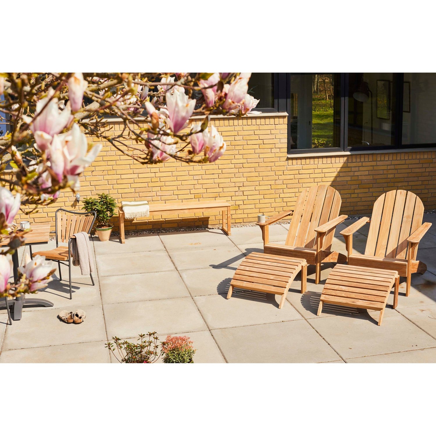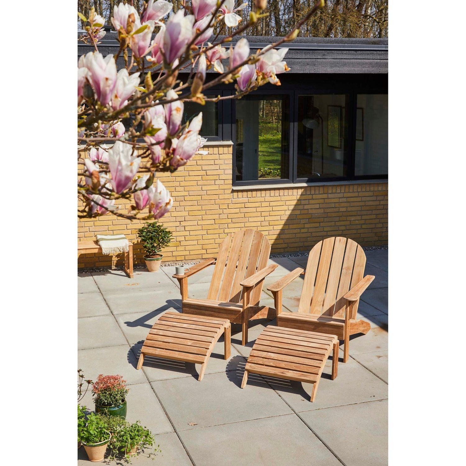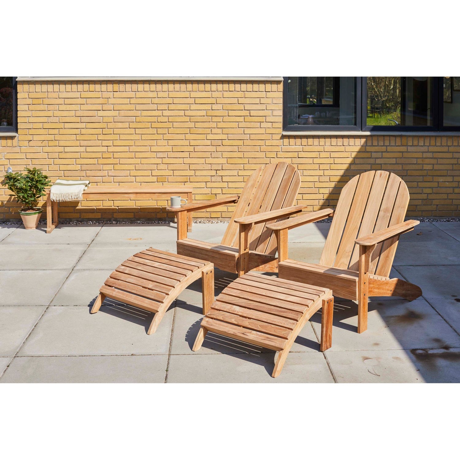 Adirondack Däckstol med Fotpall Teak Är tillfälligt slut men går att beställa. Vi återkommer med leveranstid inom några dagar.