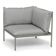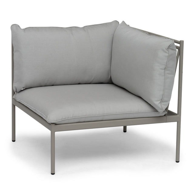 Modern stilren underhållsfri modulsoffa i mjuka runda profiler som möter stram design med lekfull modularitet. Kombineras efter ditt utrymme, precis så som du önskar. Tillgänglig i hörndelar, mittdelar, divaner och bord. Tillverkad i aluminium med dynor i gråbeige olefin. Avtagbar klädsel som kan tvättas i handtvätt 30 grader. Klämma medföljer för låsning av moduler.