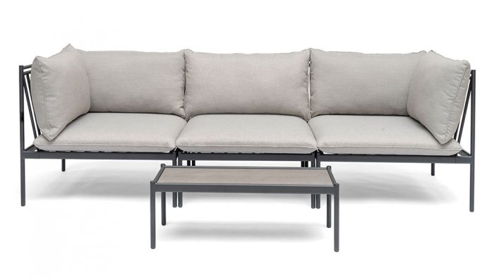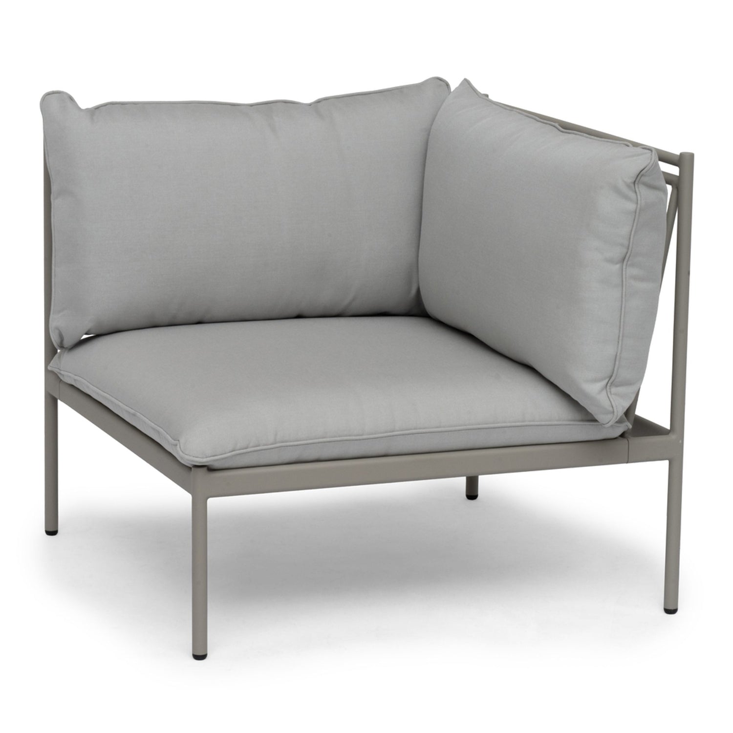 Modern stilren underhållsfri modulsoffa i mjuka runda profiler som möter stram design med lekfull modularitet. Kombineras efter ditt utrymme, precis så som du önskar. Tillgänglig i hörndelar, mittdelar, divaner och bord. Tillverkad i aluminium med dynor i fjädergrå olefin. Avtagbar klädsel som kan tvättas i handtvätt 30 grader. Klämma medföljer för låsning av moduler.