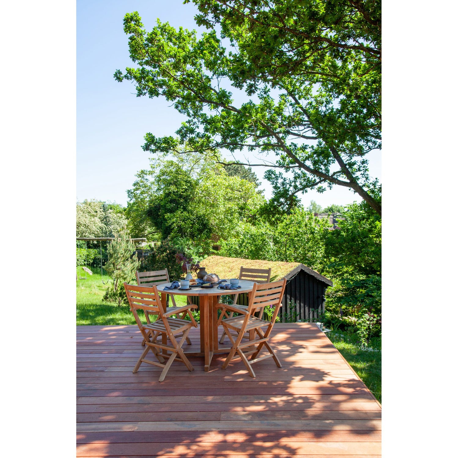 Tillverkad av hållbart teakträ, vilket gör den idealisk för vårt växlande svenska klimat.