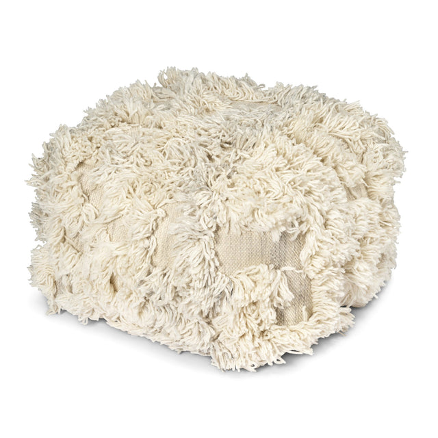 Rio är en naturligt vit, fluffig sittpuff, gjord av en handvävd matta i ull. Det oregelbundna, taktila mönstret ger puffen ett härligt liv och gör den till en stilfull detalj som passar lika bra i vardagsrummet som i hallen. Puffen fungerar utmärkt som en extra sittplats eller som en bekväm fotpall till soffa eller fåtölj. Då våra produkter är handgjorda kan storleksvariationer förekommaM. Fyllning: EPP (Expanded Polypropylene). Den elastiska EPP-fyllningen i våra puffar minskar över tid och kan behöva fyllas på.