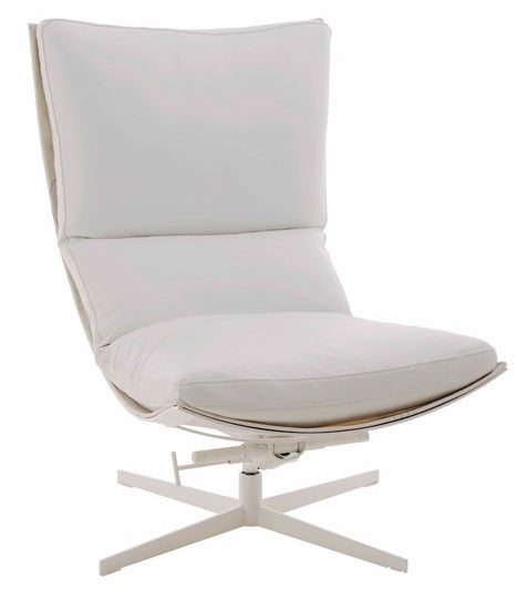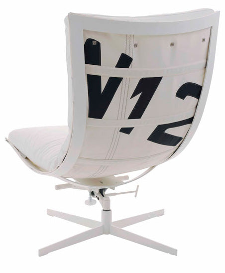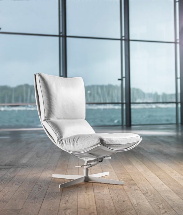 En kryssande segelbåt är en spektakulär syn och påminner oss om naturens kraft. Detta var designteametss inspirationskälla när de skapade Spinnaker-fåtöljen. Ambitionen var att skapa en fåtölj i modern design med oöverträffad sittkomfort. Välj mellan vitt eller svart läder med vit segelduk på ryggen med svart text.