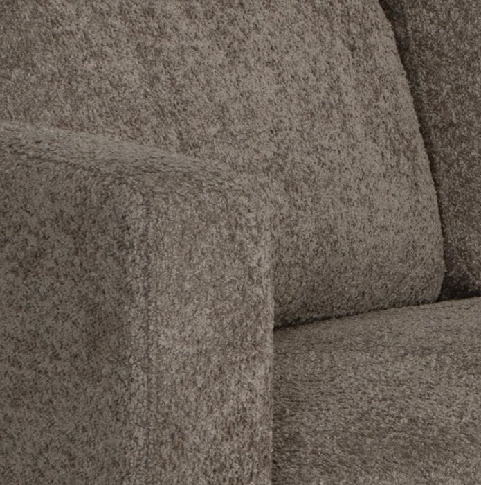 I detta utförande är Grim 3-sits klädd i det snygga boucletyget Anthology Taupe. Tyget har en mjuk och följsam känsla med en lätt fluffig textur som ger en mysig karaktär. Samtidigt är det mycket slitstarkt och lämpar sig även för offentlig miljö.