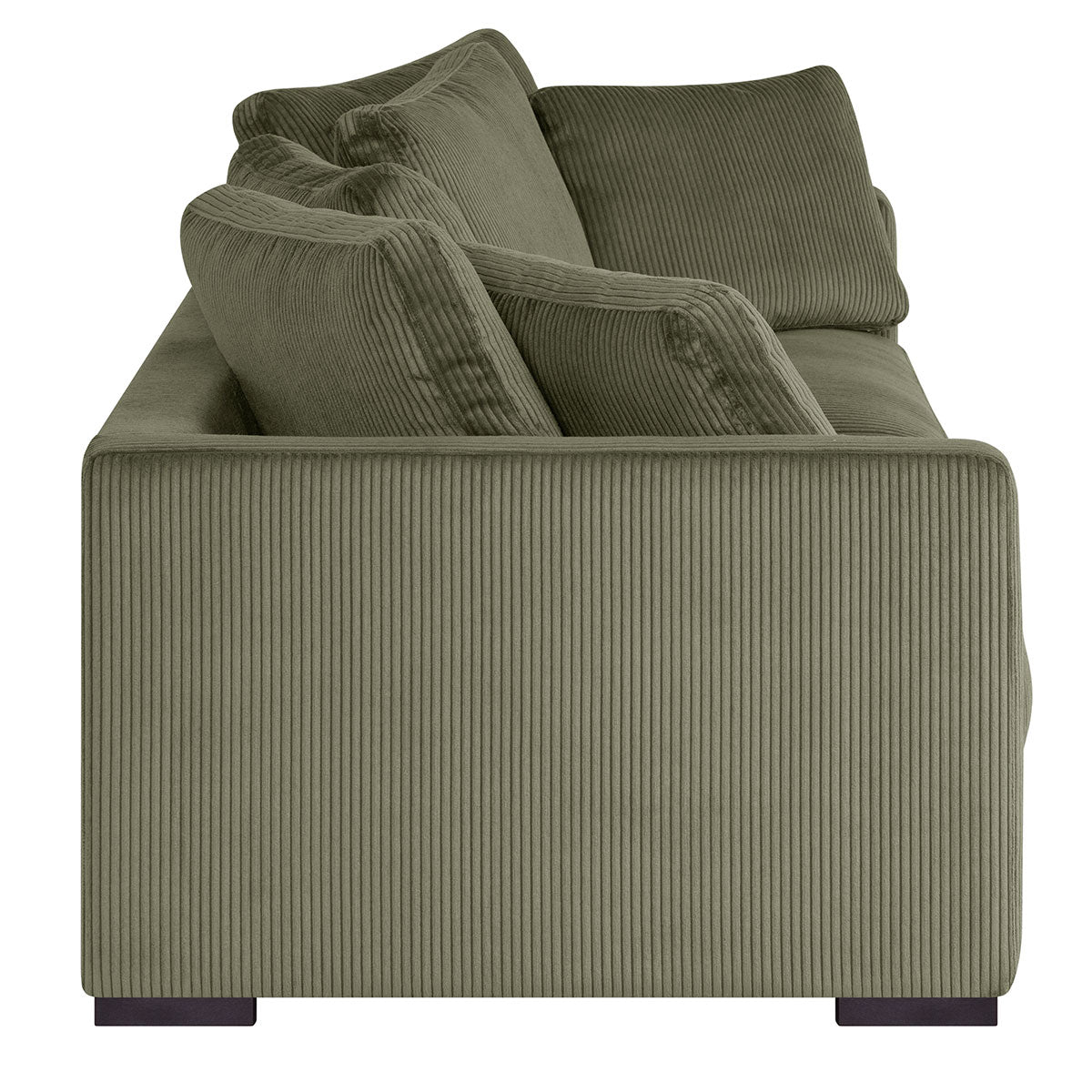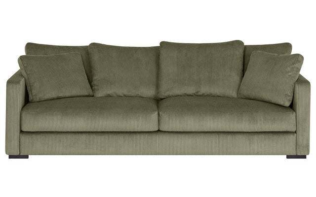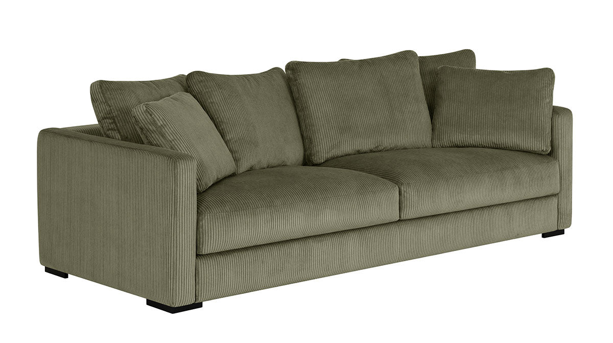 I detta utförande är Grim 3-sits XL klädd i Lincoln Green. Tyget är ett mjukt manchestertyg med en modern retrokänsla och en härlig lyster. Det är både slitstarkt och praktiskt, vilket gör det till ett utmärkt val för vardagsbruk.