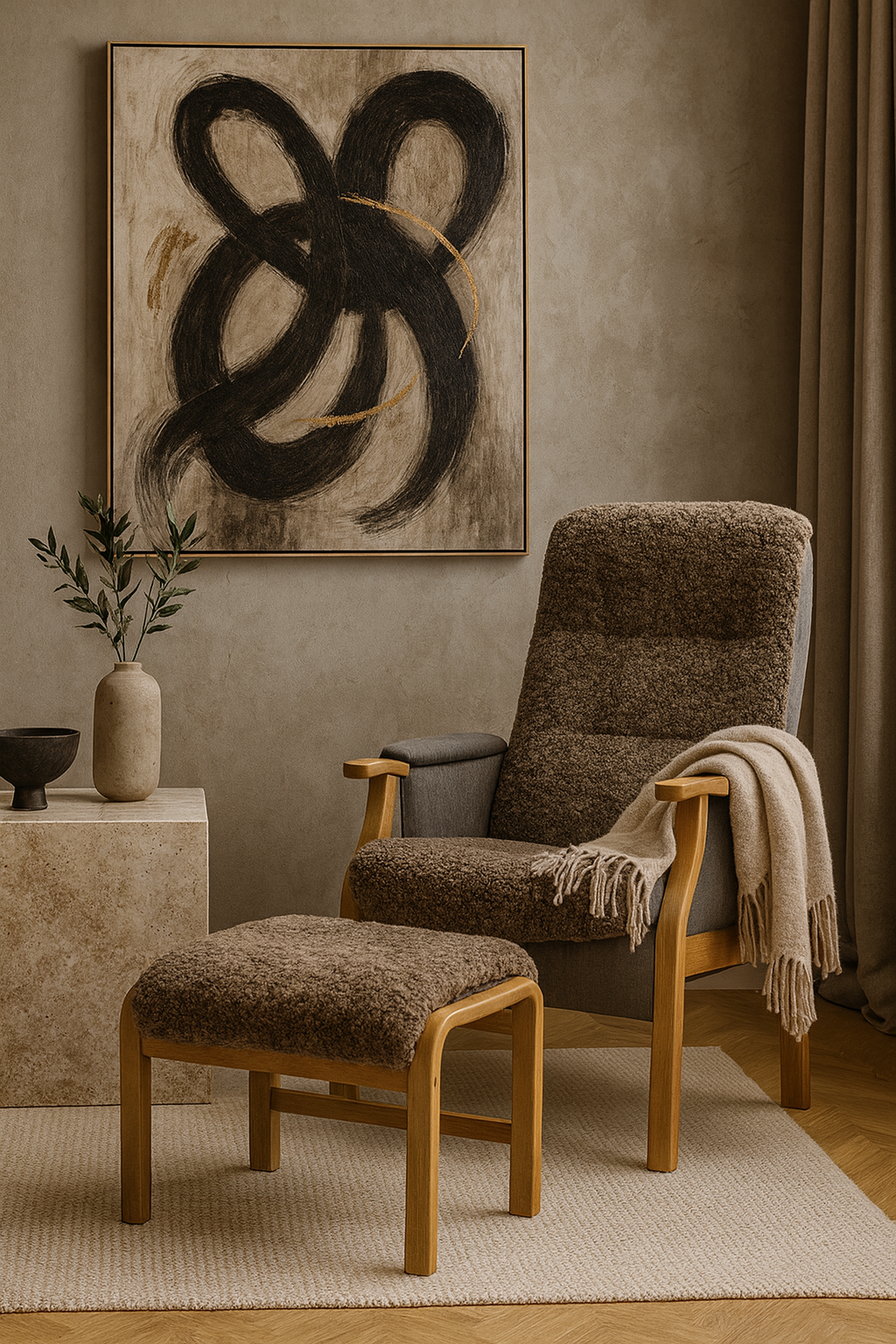 Oavsett vilken variant du väljer inkluderar både Bergen-reclinerfåtöljen och fotpall för att göra din avkoppling komplett. Du har också möjlighet att anpassa din Bergen med ditt val av material - fårskinn, tyg eller konstläder - så att den passar perfekt in i din inredning.