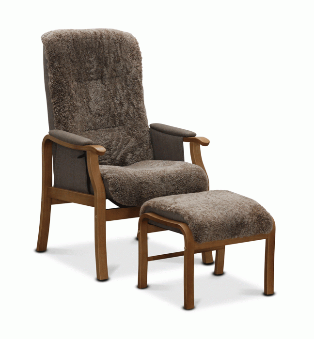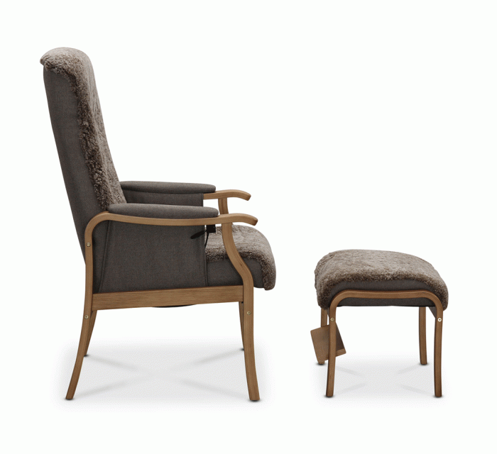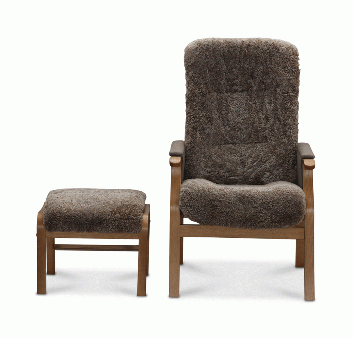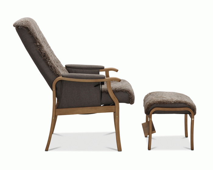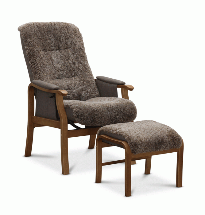 Bergen Reclinerfåtölj ink Pall Fårskinn Sahara