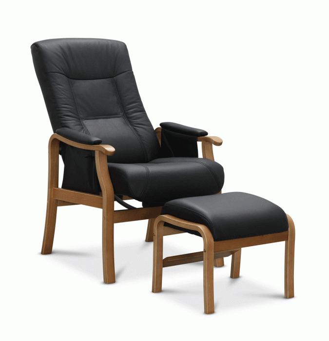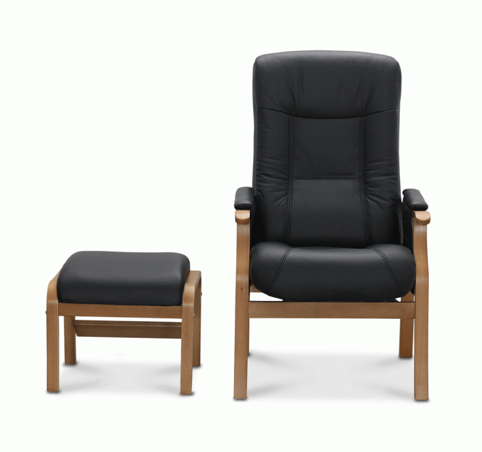 Bergen Reclinerfåtölj ink Pall Svart Konstläder