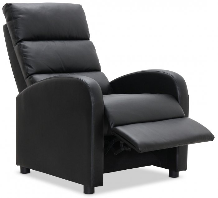 Berlin är en fantastiskt stilren fåtölj i svart konstläder med puschbackrecliner. Modellen har en härlig sittkomfort tack vare sitt fotstöd och generösa sittdjup. Stommen som är gjord i trä och metall gör fåtöljen stadig.