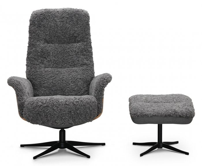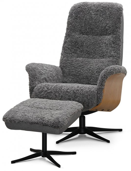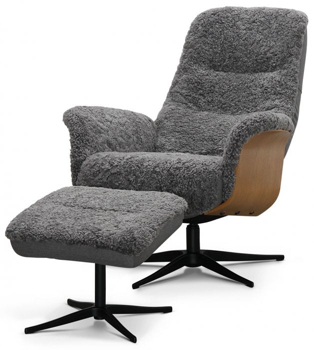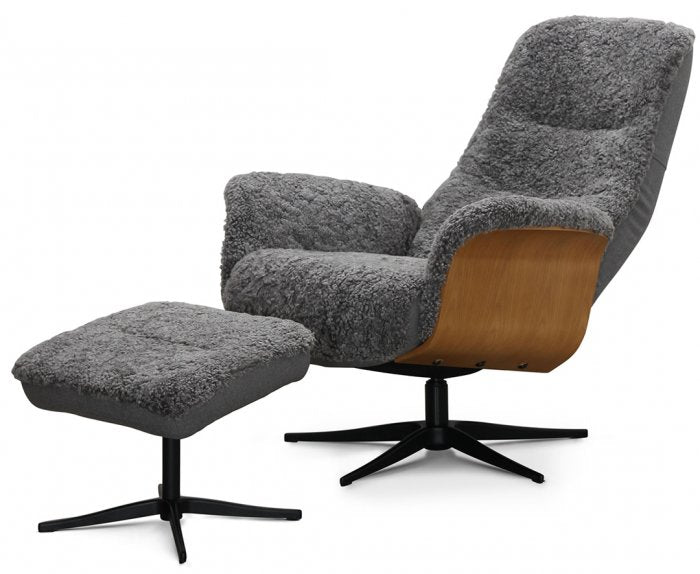 Fårö Snurrfåtölj ink Pall Fårskinn Grafit