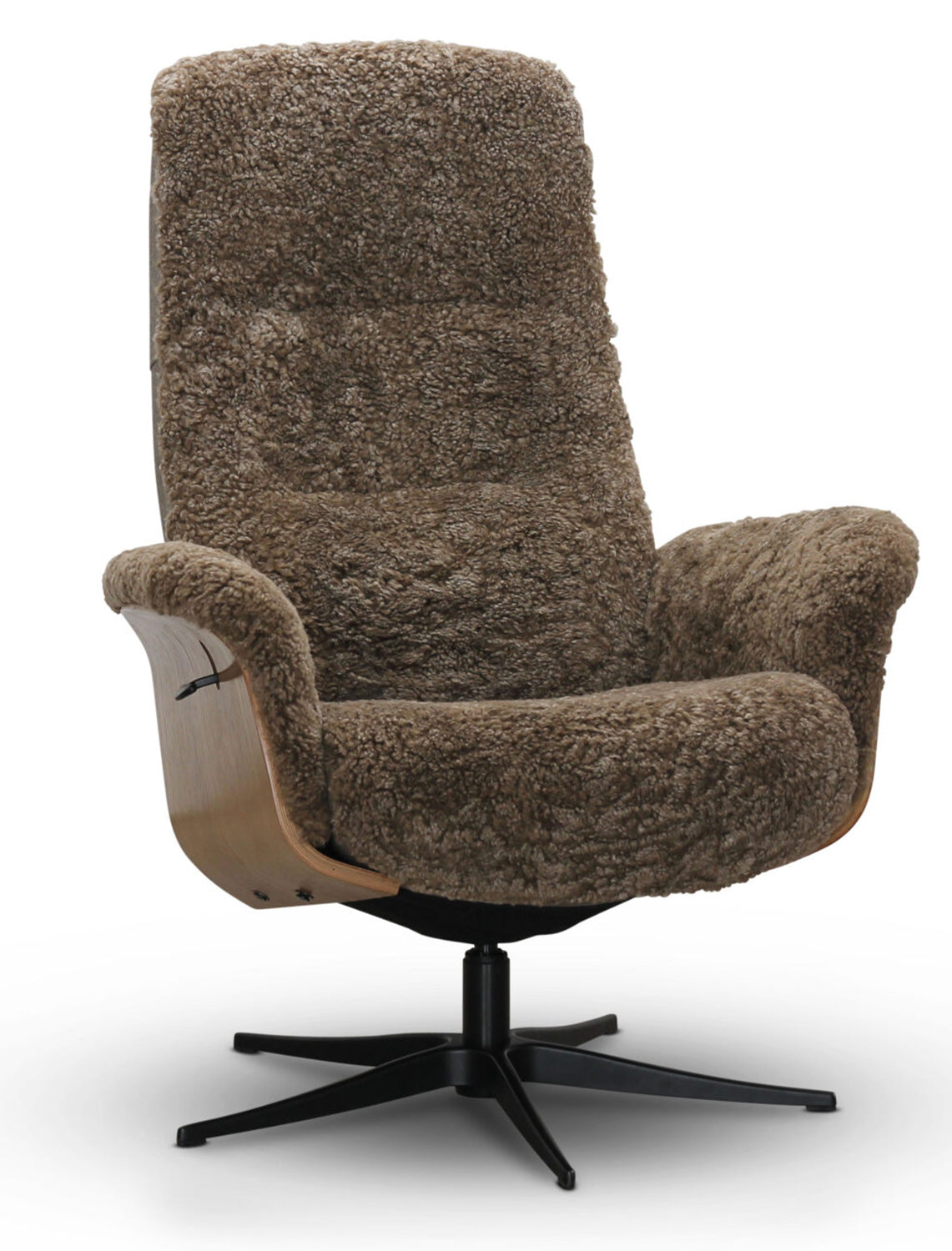 Få mer än bara en fåtölj med Fårö i fårskinn – det är en sann komfortupplevelse. Denna snurrfåtölj är utrustad med ett ställbart ryggstöd som smidigt anpassar sig efter din rygg och nacke när du lutar dig tillbaka. Det är komfort i dess finaste form.