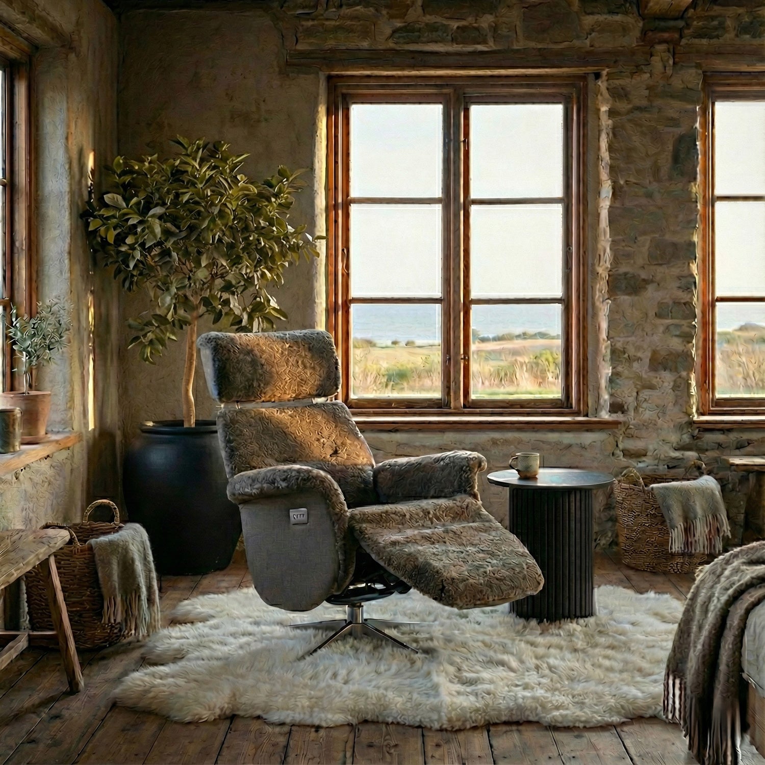 Lissabon Fåtölj Elektrisk Recline Sahara Fårskinn
