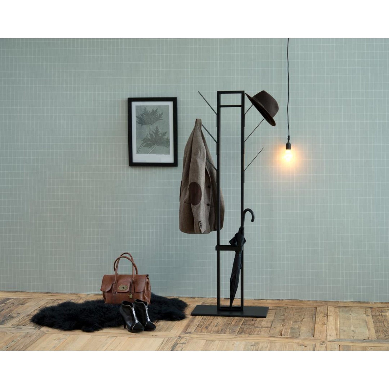 En minimalistisk hjälpare som alltid är redo att ge dig en hand. Ja, dess pinnar för att vara exakt. Den kan bära flera rockar, jackor och andra accessoarer och ändå se stilren ut. Och märka det praktiska paraplystället. Den är tillverkad av hållbart metall som ger klädhängaren en lätt industriell känsla. Den platta basen säkerställer att vikten fördelas jämnt, vilket ökar stabiliteten.
