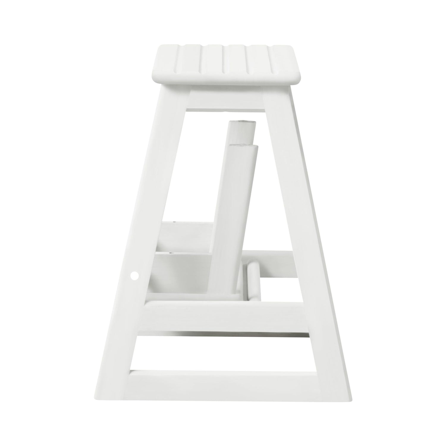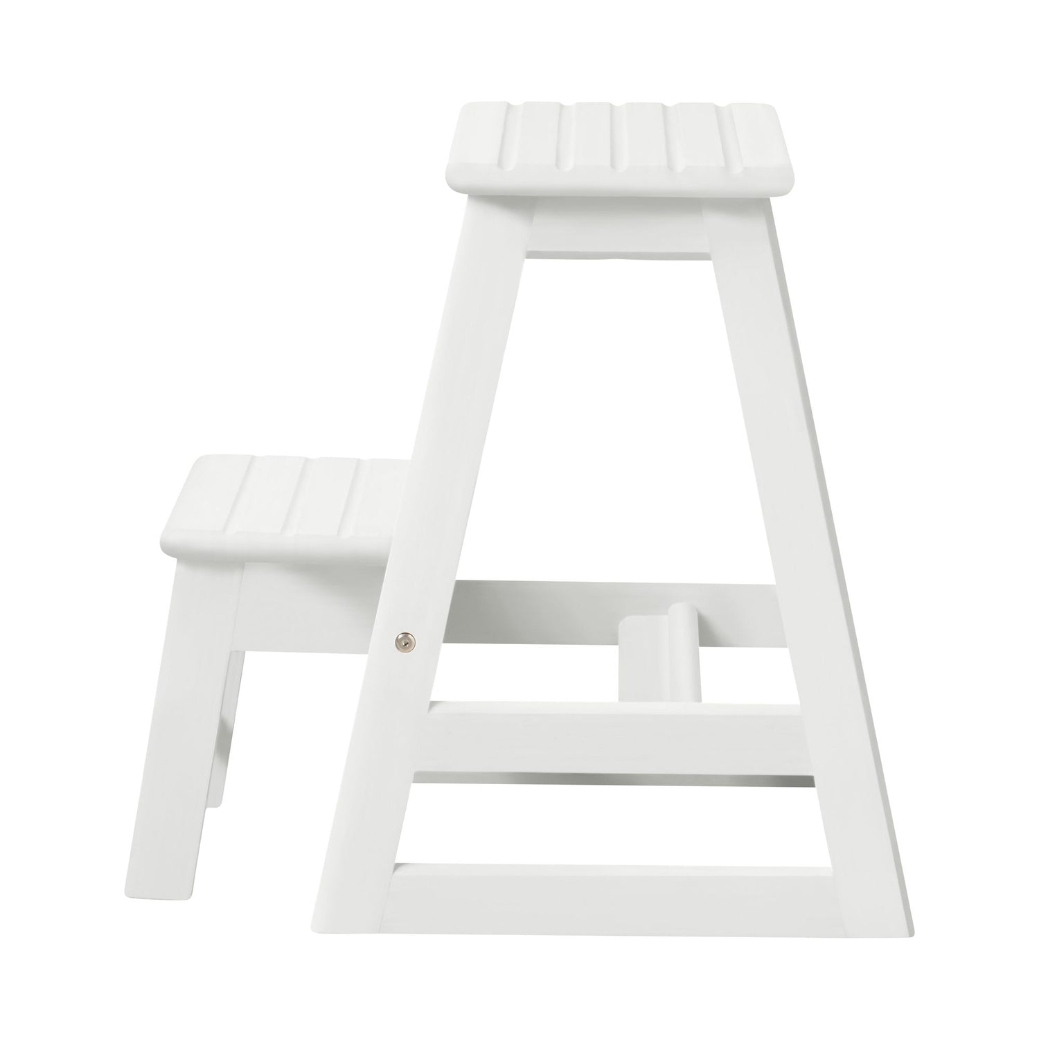 Denna vita lackerade två-stegs trappstege är både stilren och funktionell. Perfekt för att nå höga platser med lätthet.