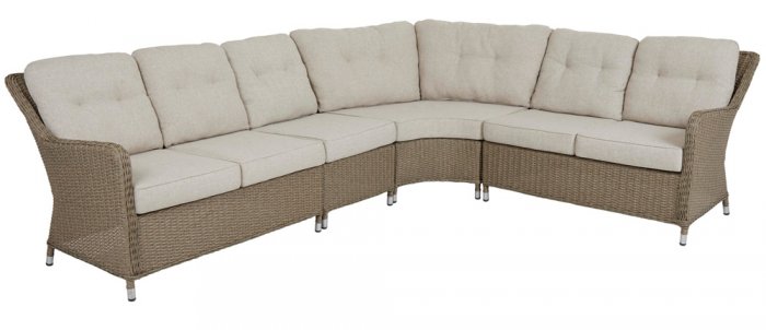 Hornbrook är en prisvärd loungeserie från Brafab. Hornbrook är en beige loungesoffa som är tillverkad i en beige halvrundad konstrotting med dynor i sandfärgad olefin. Soffan har sköna dynor och en perfekt utformning vilket ger en underbar sittkomfort. Hornbrook har en retrodesign med runda former och naturtrogen konstrotting. Stommen är UV-resistent och helt underhållsfri. Dynorna är tvättbara i maskin.