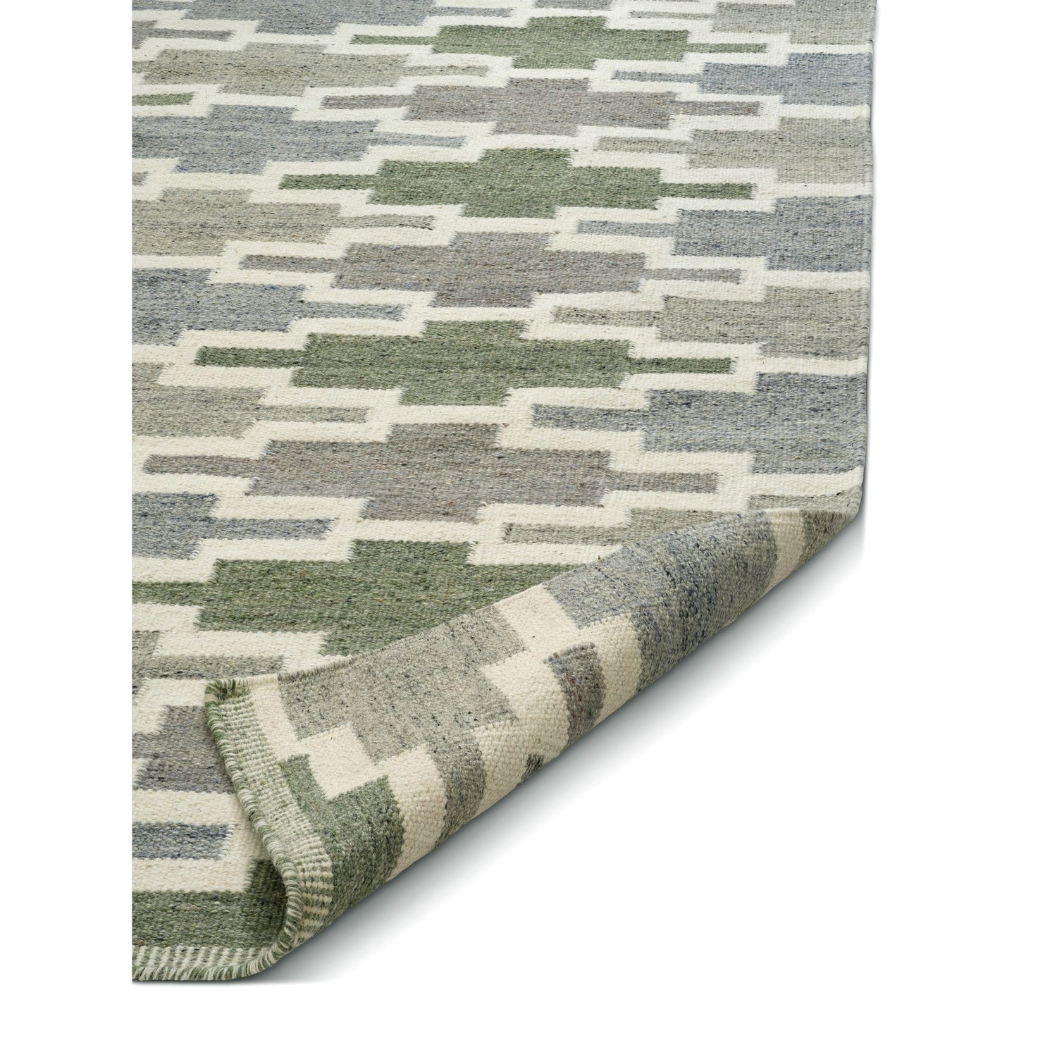 Den flatvävda konstruktionen gör mattan vändbar och lätt att möblera med. Ullen är naturligt slitstark och smutsavvisande och utvecklar med tiden en levande struktur. Varje exemplar är unikt, med små variationer i väv och färg som är en del av det genuina hantverket.