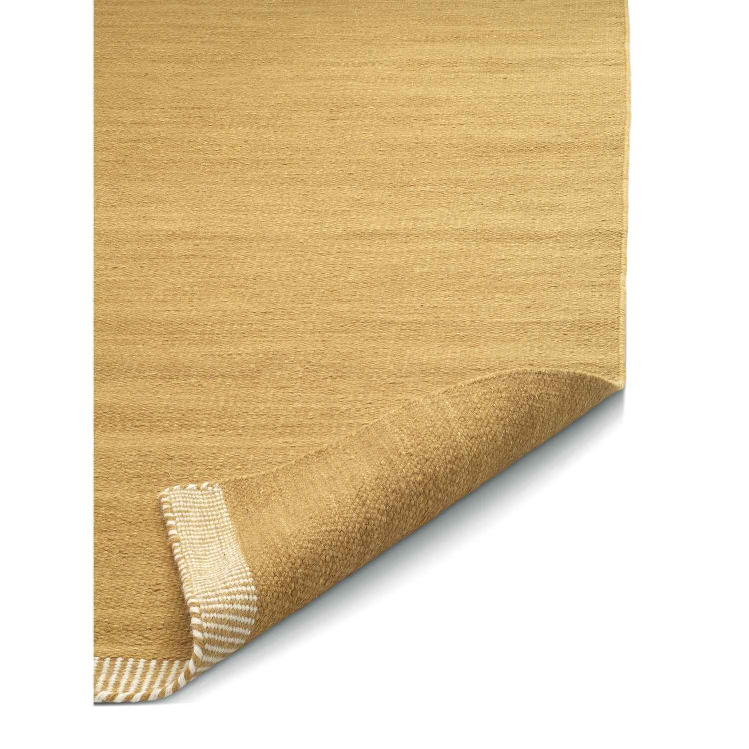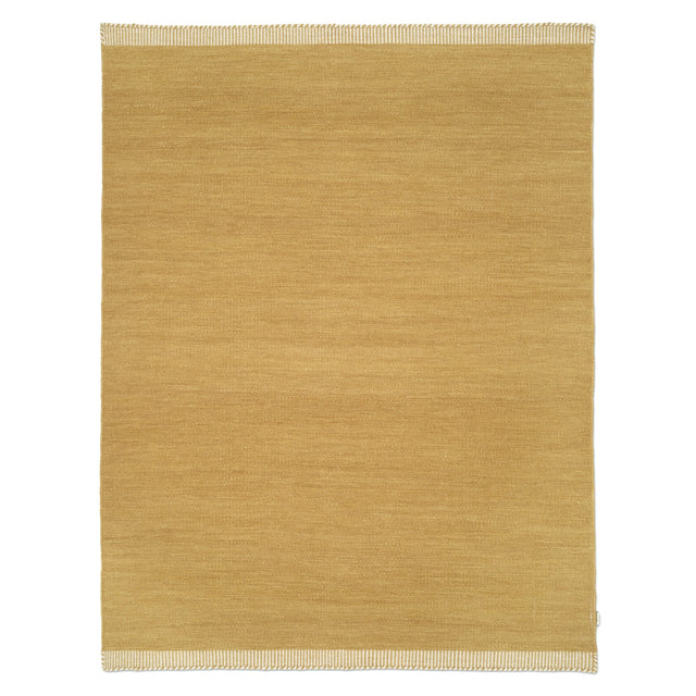 Pure är en handvävd ullmatta där det enkla formspråket får stå i centrum. Den varma gula tonen tillför rummet ett mjukt ljus och en livfull energi utan att kännas påträngande. Mattans täta, slätvävda yta ger ett lugnt och harmoniskt uttryck samtidigt som ullens naturliga struktur skapar ett levande djup i färgen.