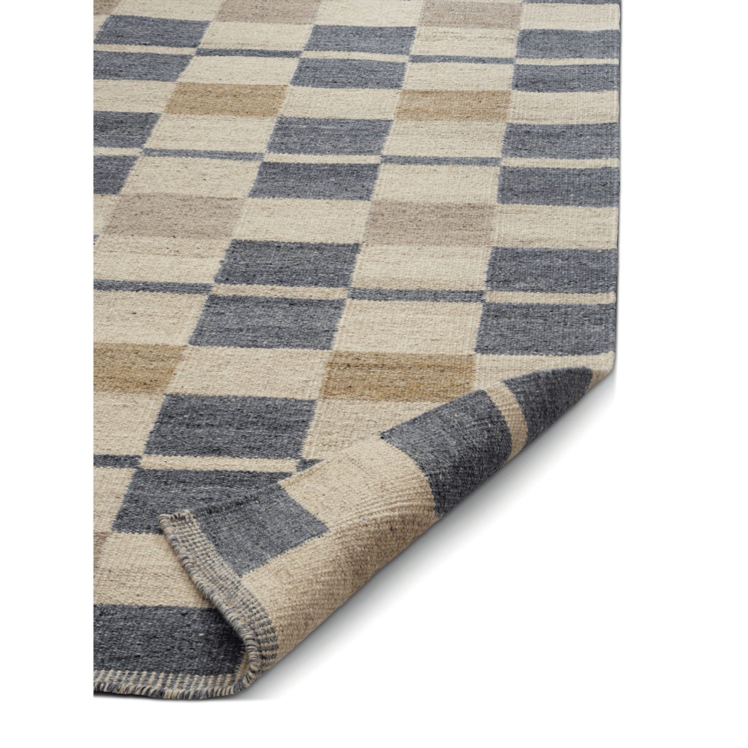 Den flatvävda konstruktionen gör Rutvik Blå vändbar och smidig att placera under möbler, samtidigt som ullens naturliga karaktär ger en matt, taktil yta med vacker struktur. Mindre variationer i väv och färgton är en naturlig del av det genuina hantverket och bidrar till varje mattas unika uttryck.