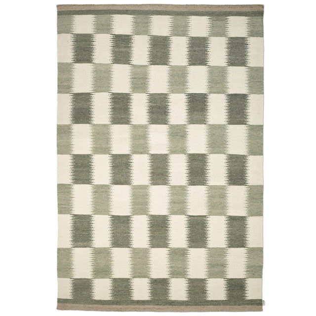 Tagel är en handvävd röllakanmatta ur kollektionen Arv, där traditionellt hantverk möter ett samtida uttryck. Det grafiska rutmönstret byggs upp av mjukt tonade färgskiftningar som rör sig i en mörkgrå bas med inslag av naturvitt och dämpade gröna nyanser. Resultatet är en matta som känns både levande och balanserad, utan att ta över rummet.