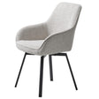 Amalfi är en stilren snurrstol i mjukt, melerat tyg som finns i både grått och offwhite, lätt att matcha med alla hem. Den omslutande sitsen med bekväma armstöd ger skön komfort under långa middagar och möten, medan de svarta metallbenen sätter en modern, skandinavisk ton. Den smidiga snurrfunktionen gör att du enkelt kan vända dig mot samtalet eller bordet utan att flytta stolen, praktiskt i både kök, vardagsrum och hemmakontor.