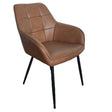 Cubo i konjakstonat PU-läder ger matplatsen en varm och sofistikerad känsla. Den fyrkantigt formade sitsen och det omslutande ryggstödet är mjukt stoppade för skön komfort, medan de smäckra, svarta metallbenen ger stabilitet och ett modernt uttryck. Lätt att torka av, perfekt för vardagsbruk.