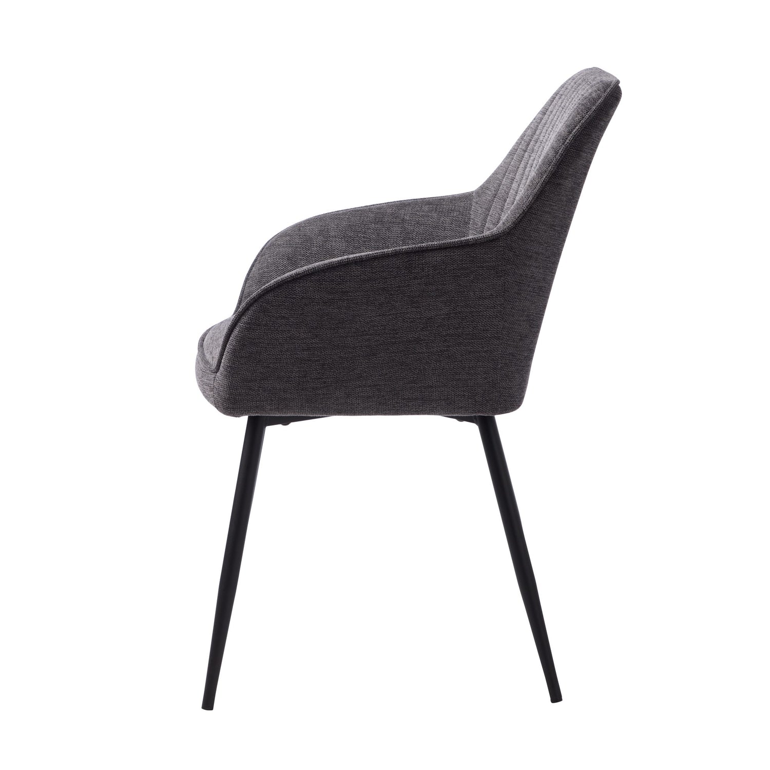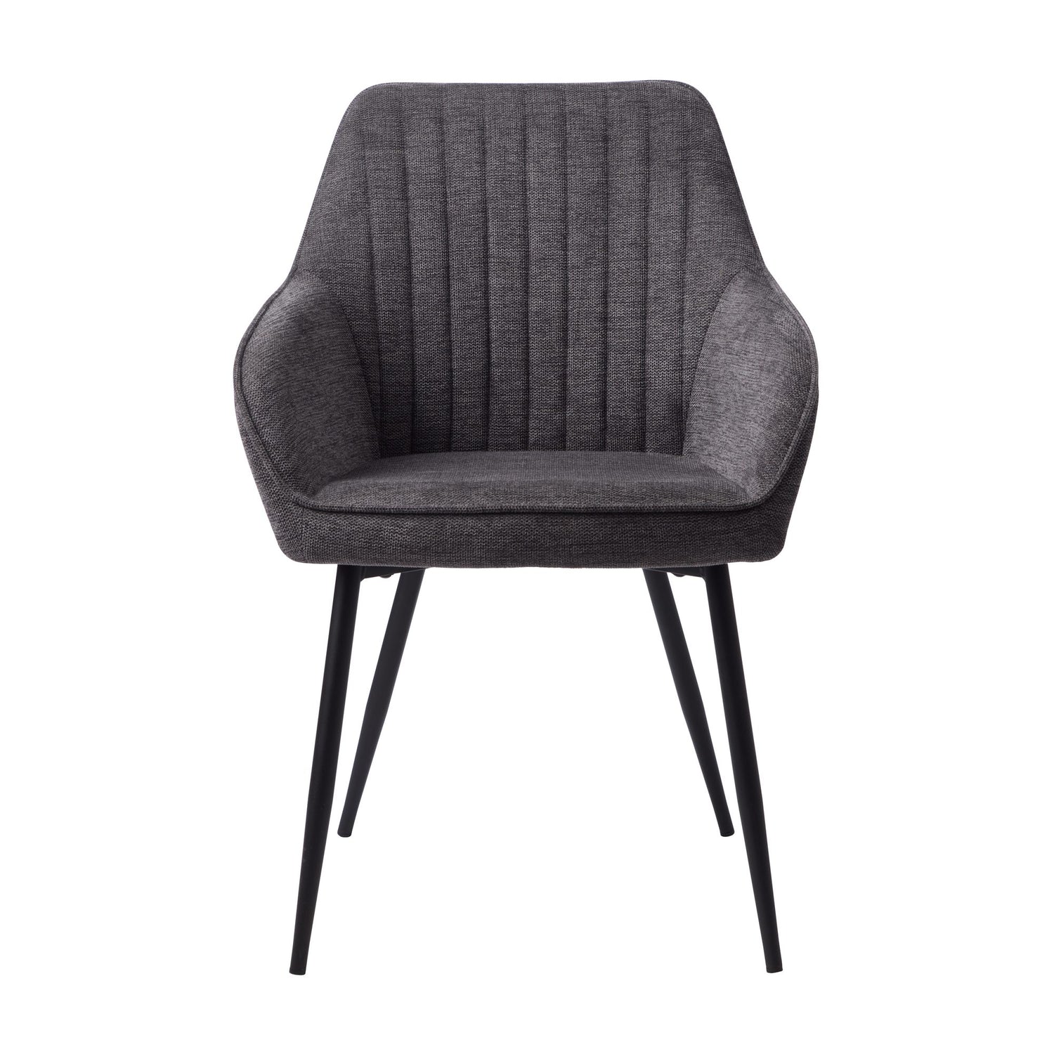 Cubo Randig i mörkgrått ger matplatsen en skarp, modern ton. Den mjuka stoppningen och den omslutande ryggen bjuder in till långa middagar, medan den vertikala randsömnaden adderar elegant struktur och en premiumkänsla du både ser och känner. De slanka benen i svart, pulverlackerad metall håller siluetten lätt och stilren, lätt att matcha med både trä- och stenbord för en sammanhållen, skandinavisk look.