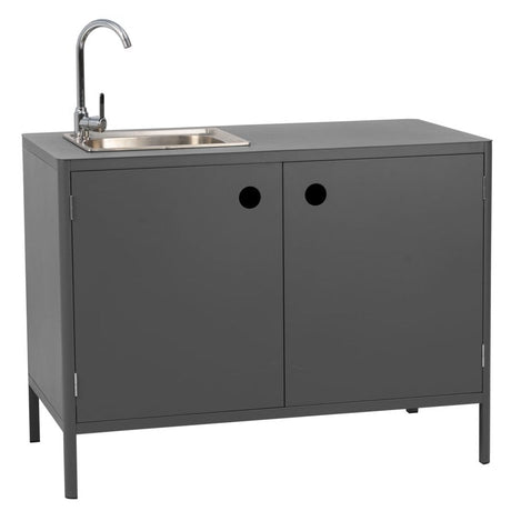 Utekök med diskbänk och kran i kollektionen Kelia. Laga, förvara och njut – utomhus. Med Kelia skapar du ditt perfekta utekök: smart, stilrent och alltid redo för matlagning under bar himmel. Och för dig som gillar odling fungerar den lika bra som en praktisk odlingsbänk. Generösa arbetsytor och genomtänkt förvaring gör det enkelt att både tillaga och servera. Serien finns i tre versioner – med dörrar, med diskbänk och kran eller med öppen hylla – alla designade för att matcha kollektionen Delia på bästa sätt. Välj även mellan tre färger.