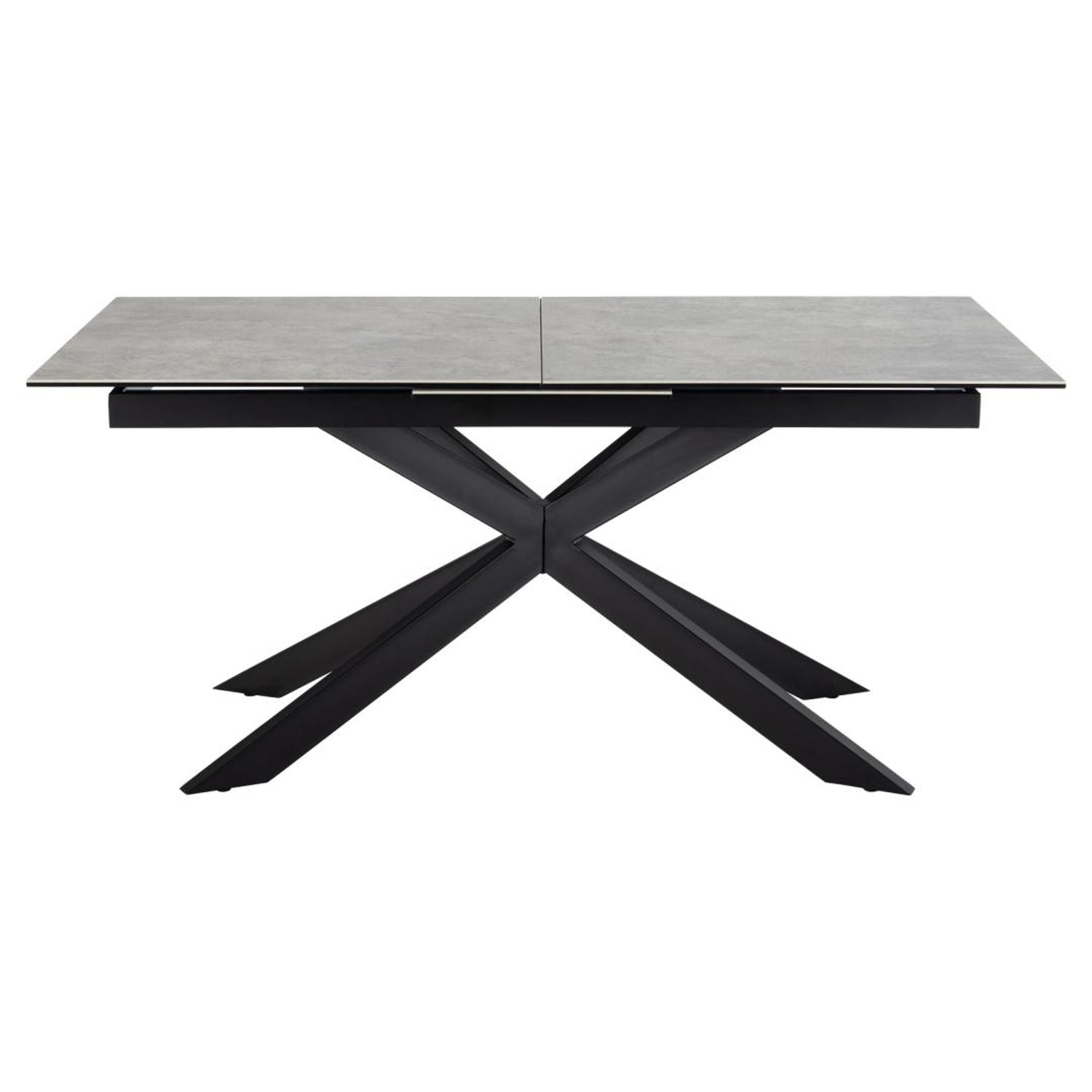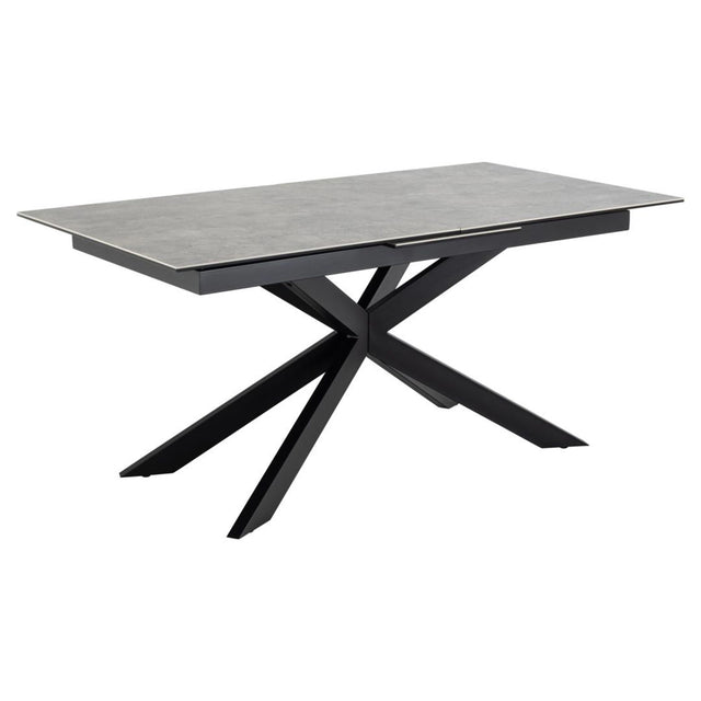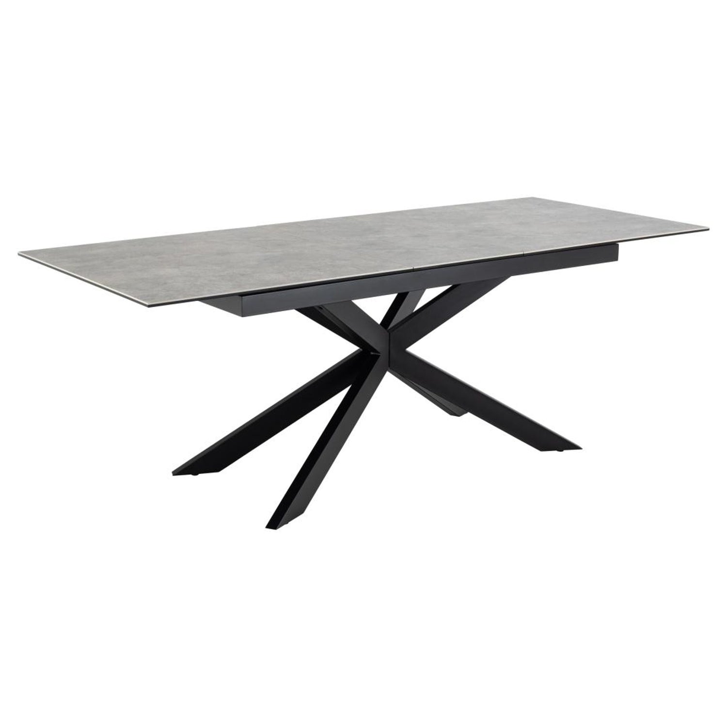 Matbordet Armand kombinerar stil med funktion. Den grå keramiska bordsskivan erbjuder en värme- och reptålig yta som är både elegant och lätt att underhålla. Matbordet kan enkelt förlängas tack vare den synkrona förlängningen, idealiskt för att rymma fler gäster. Det svarta pulverlackerade korsbenet ger en dramatisk touch, vilket kompletterar bordets sofistikerade design.