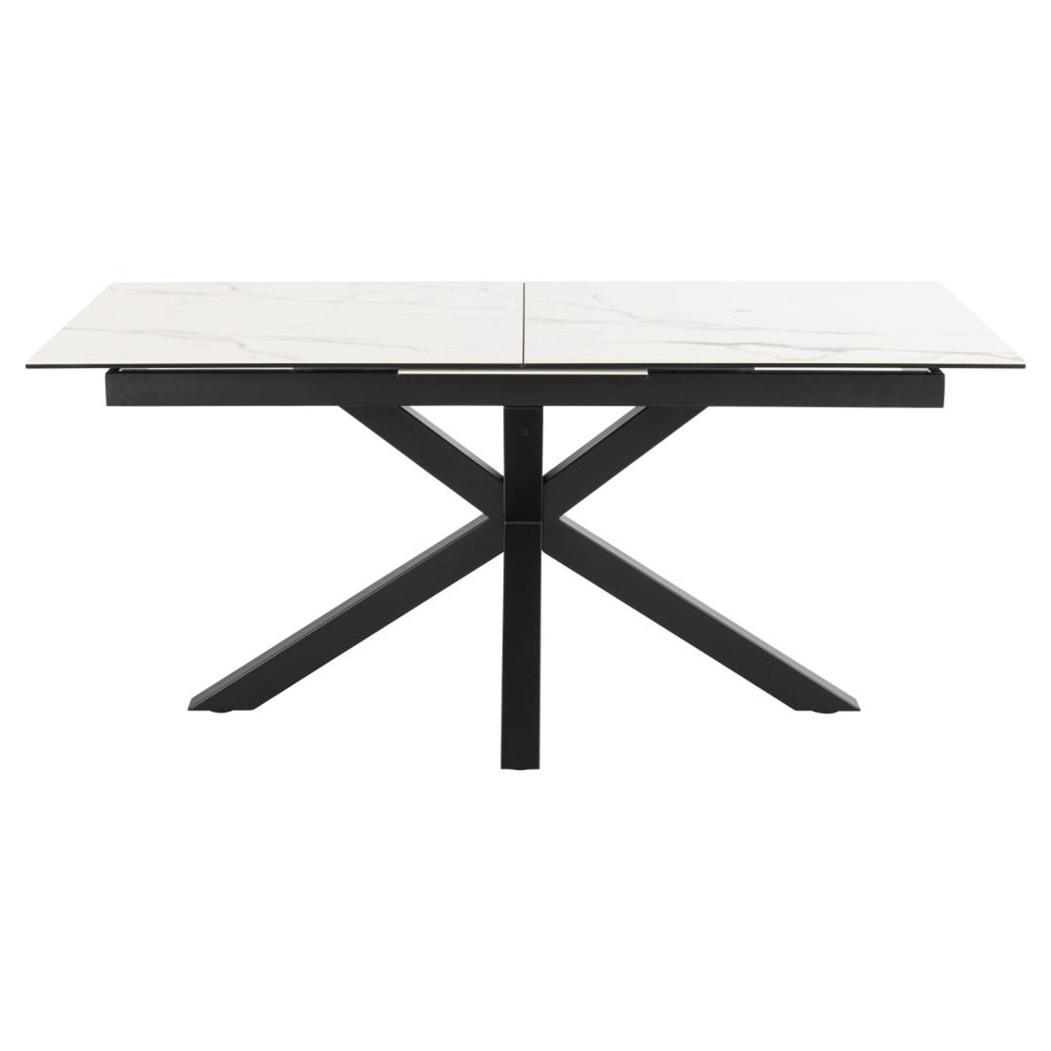 Verdun matbord kombinerar modern design med smart funktion och en smidig storlek som ändå rymmer många. Den värme- och reptåliga keramiska bordsskivan har ett elegant vitt marmormönster som skapar ett ljust och stilrent uttryck.