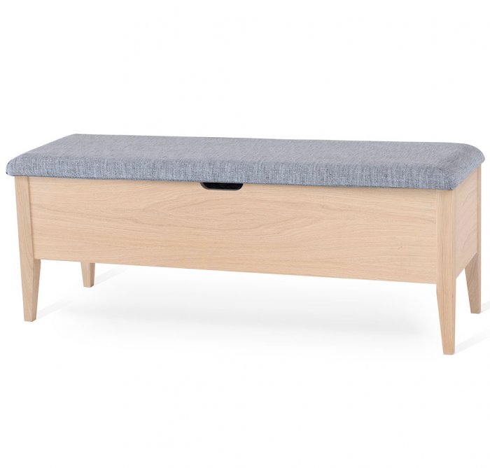 Klinte är vår eleganta och funktionella bänk med lock och är ett utmärkt tillskott i hallen, sovrummet eller andra rum i ditt hem. Klintes stomme är skapad i en harmonisk blandning av massiv ek och fanér, och designen är både tidlös och modern. Det är just dessa detaljer som gör Klinte till ett självklart val för den stilsäkra inredaren.