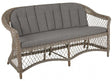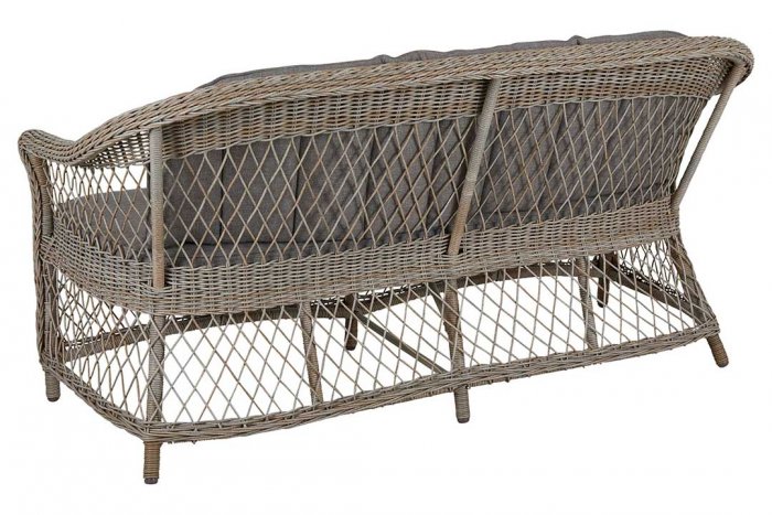 Kamomill är en bekväm soffa med influenser från förr i glesflätad 5,3mm beige eller gråmelerad konstrotting på stomme av aluminium. Bekväm serie för middagar eller kaffestunder. Soffan är otroligt bekväm och fungerar utmärkt som en loungesoffa eller soffa till en matgrupp. Dyna i olefin ingår.