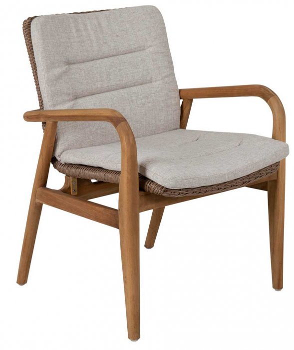 Lilja är en snygg och tidlös matstol/karmstol som tar för sig med sina rejäla former. Här sitter du skönt både för avkoppling och till fest. Sittdelen finns antingen i stilfulla breda teakribbor eller vävd konstrotting.