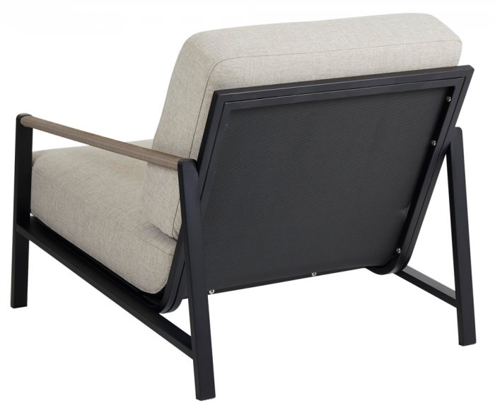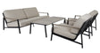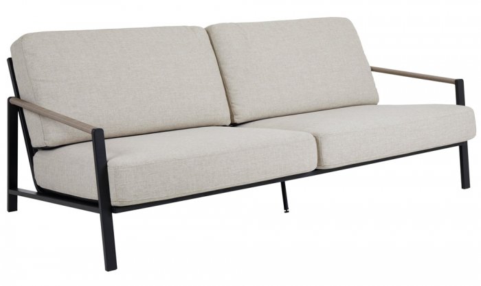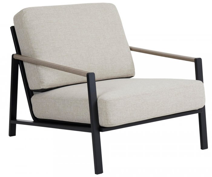 Lyra är en modern och mycket sober loungegrupp i en härlig blandning av material. Gruppen är oerhört bekväm tack vare de tjocka dynorna med högdensitetsskum. De är klädda med fodrat olefintyg som har en vattenavvisande beläggning på insidan. Stommen består av svart pulverlackerad rostfritt stål med vackra detaljer av konstrotting på armstöden. Allt för att stå emot olika väderlekar.
