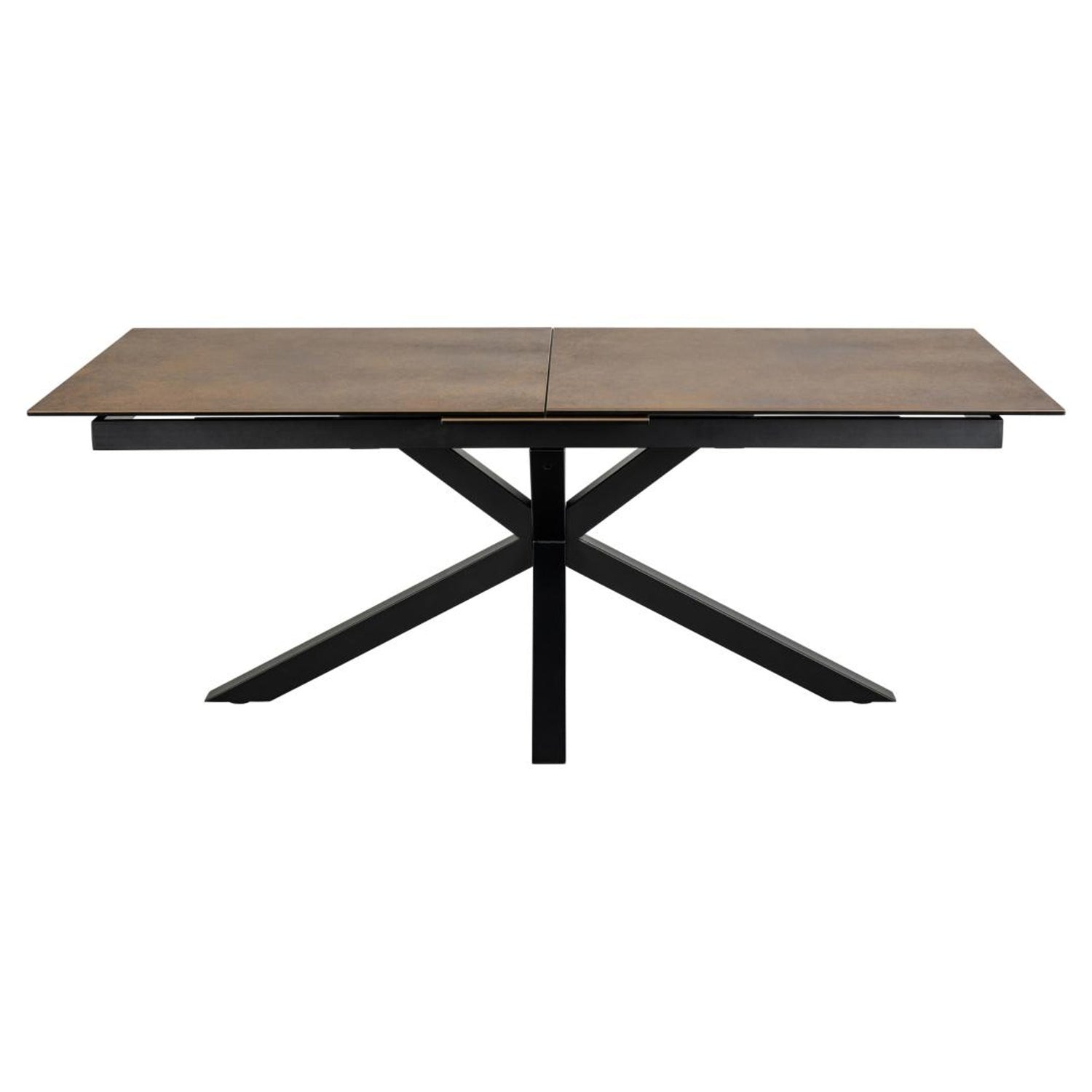 Verdun matbord kombinerar modern design med smart funktion och gott om utrymme. Den värme- och reptåliga keramiska bordsskivan har ett levande rostbrunt utseende som ger ett varmt och uttrycksfullt intryck.