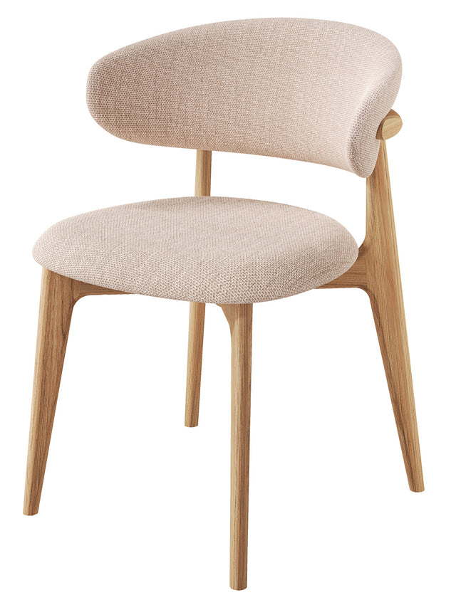 Ellinor är en stilren och genomtänkt matstol i massiv ek, skapad för att ge både vardag och middagsstunder en extra känsla av komfort. Den mjuka, stoppade sitsen gör att du kan sitta bekvämt även under längre måltider, medan den halvhöga, omslutande ryggen ger ett naturligt stöd som känns både avlastande och behagligt. Formen är elegant men ändå diskret, med koniska ben och mjukt rundade linjer som gör att stolen smälter in i de flesta hem och kan kombineras med såväl moderna som mer klassiska matbord.