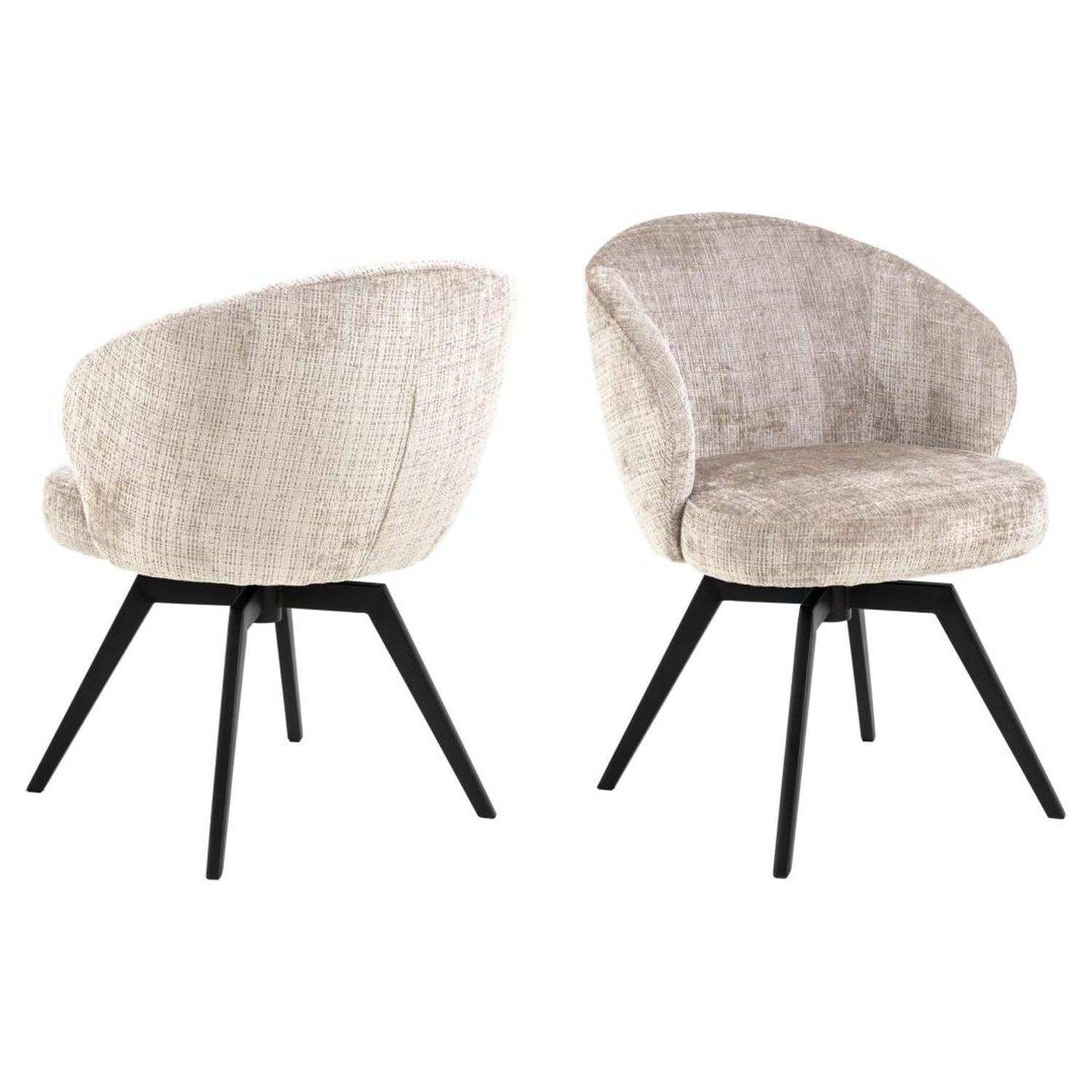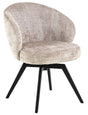 Den ergonomiskt utformade sitsen vilar på en stadig bas med stilrena, vinklade ben som ger både stabilitet och karaktär. För extra komfort är sitsen utrustad med pocketfjädrar som formar sig efter kroppen och ger en fjädrande, stödjande känsla. Den smarta vridfunktionen med automatisk retur gör det enkelt att röra sig naturligt vid matbordet, vilket ökar både bekvämlighet och dynamik i rummet.