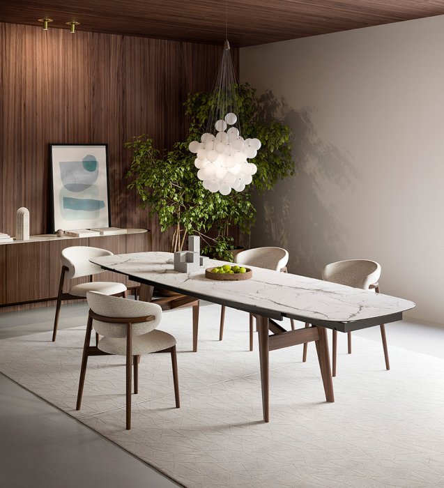 Oleandro är en exklusiv stol från italienska Calligaris med vadderad träbotten och en sits som ger en ren komfort. Stolsitsen och ryggstödet har en generös mjuk stoppning som finns i olika sorters klädsel. En snygg touch på denna modell är att hitta på änden av träryggstödsramen som mästerligt har visats till en tillplattad spets