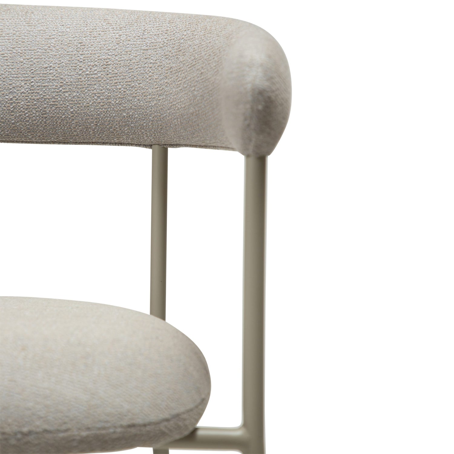- Klädsel: i bouclé-tyg, ett bekvämt material känt för sin unika, öglade textur och rika, taktila känsla.