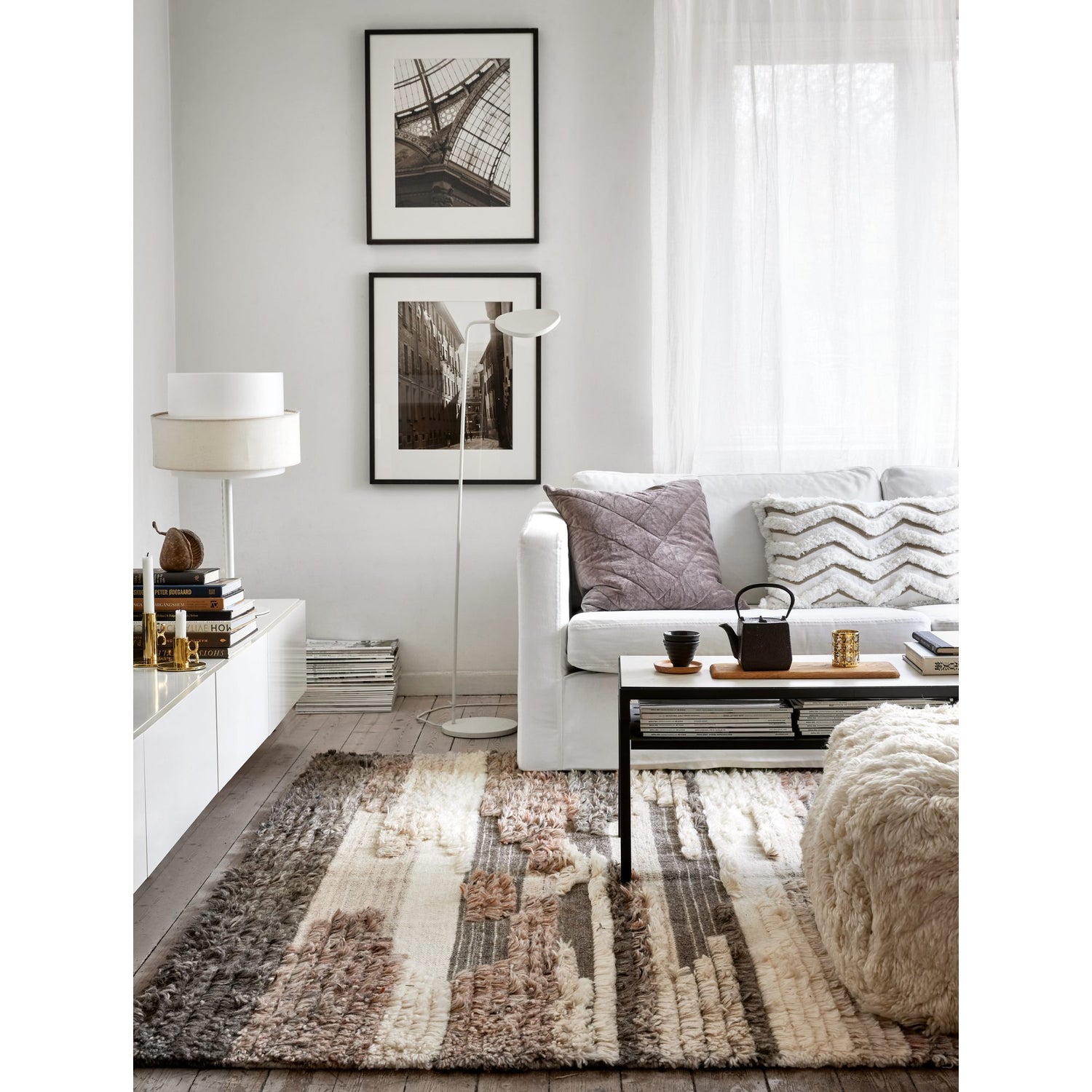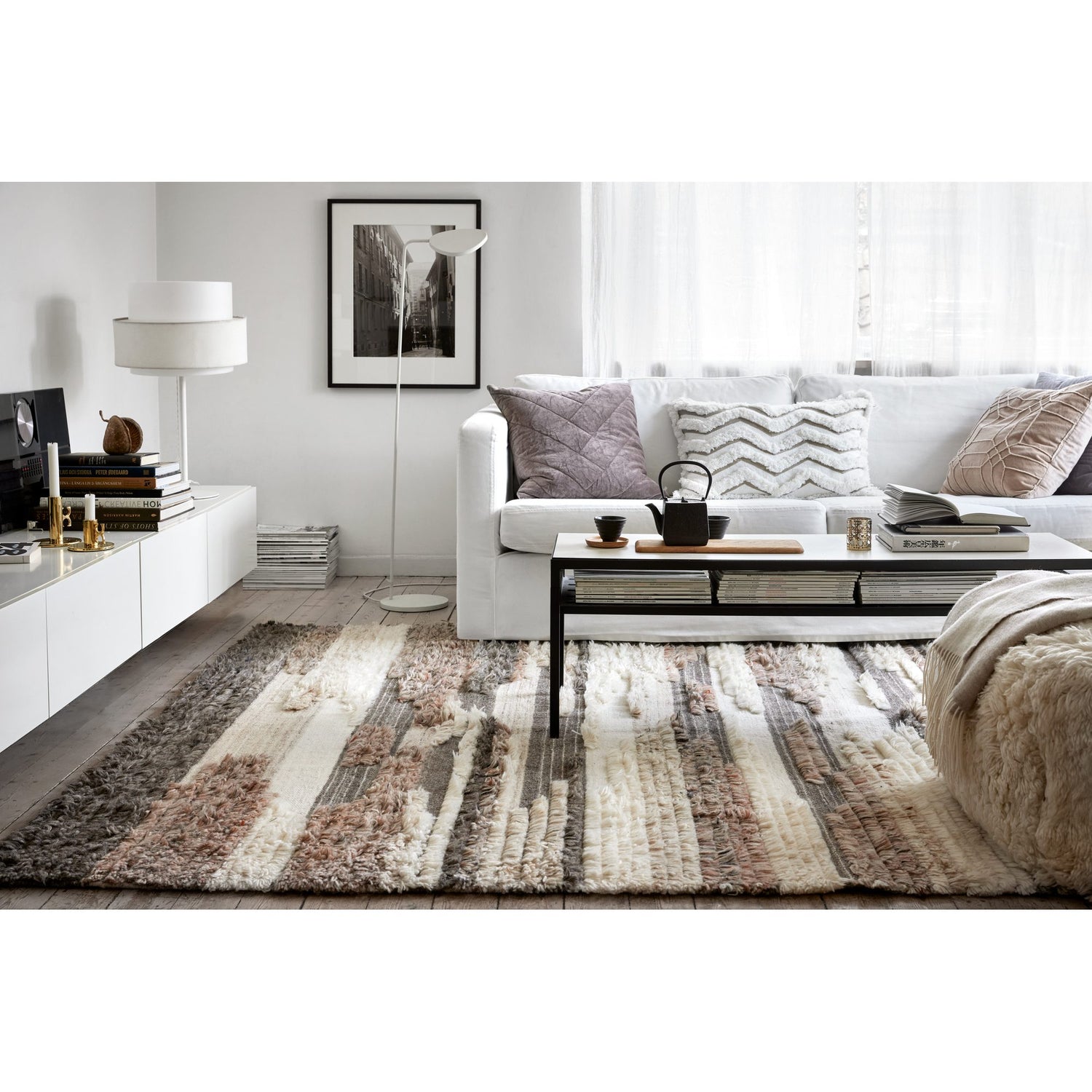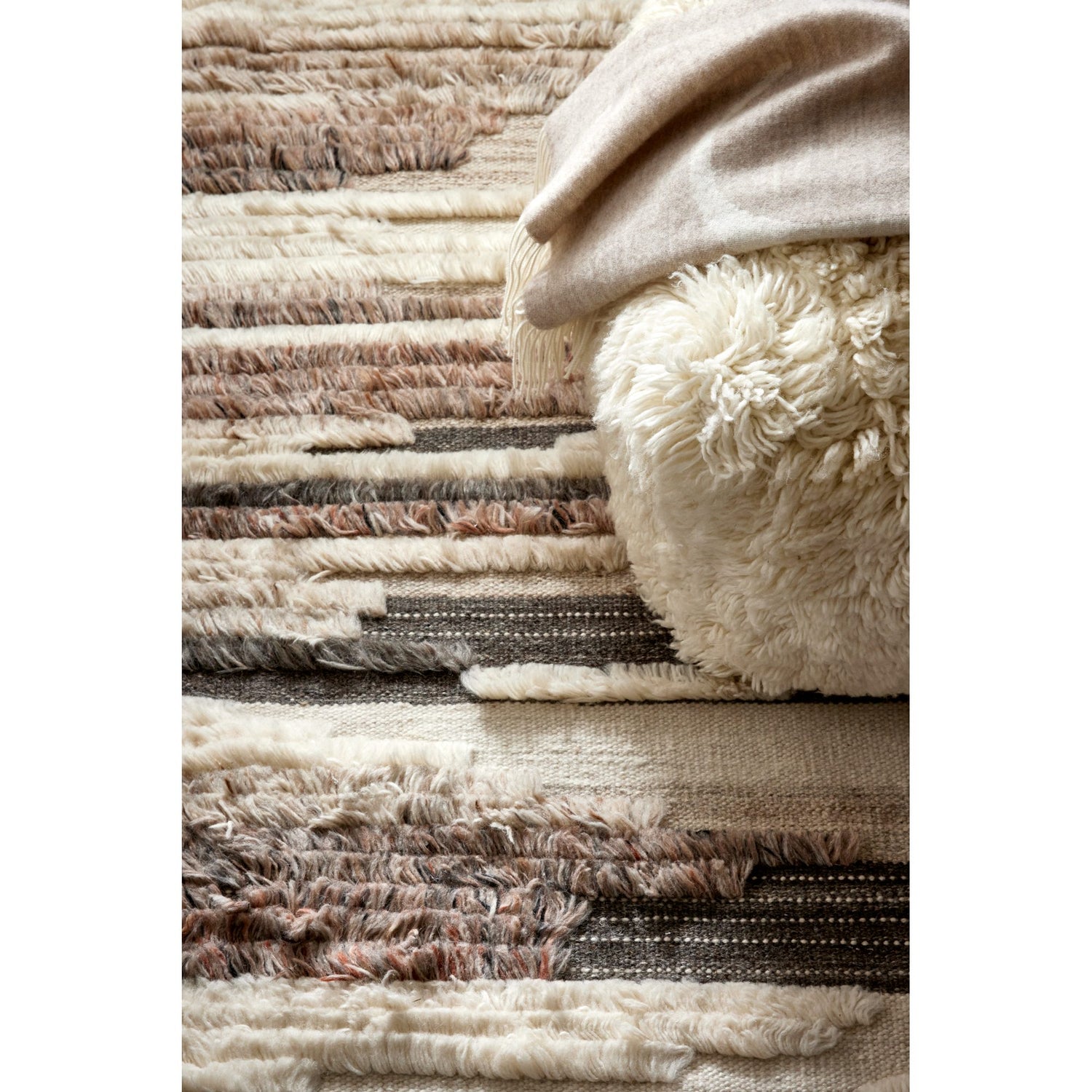 Ullmatta Agadir Natur är en handvävd luggmatta i naturlig, ofärgad ull. Det oregelbundna mönstret ger mattan ett härligt liv. Mattan är flatvävd, mönstret är upphöjt i lugg som mjukar upp mattans intryck och gör mattan skön att gå på.