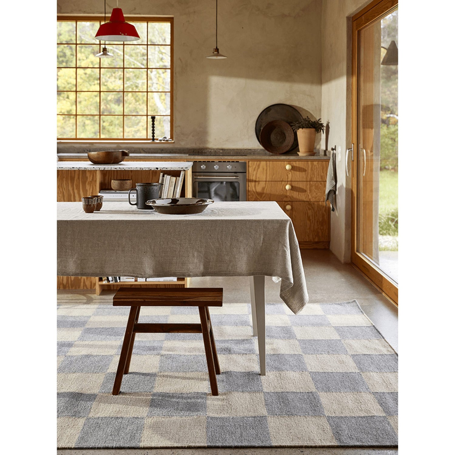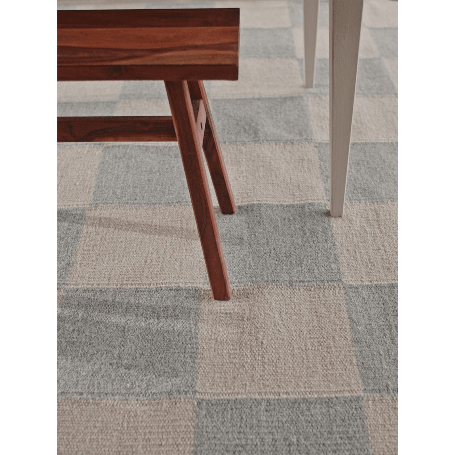 Upptäck tidlös elegans med vår handvävda matta Square. Det klassiska rutmönstret i grått och beige skapar en fräsch och stilfull touch i ditt hem. Squares-mattan är tillverkad av ull, vilket gör den idealisk för kök och hall. Mattan är dessutom vändbar, vilket förlänger dess livslängd.