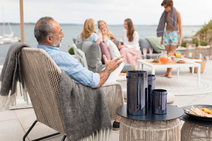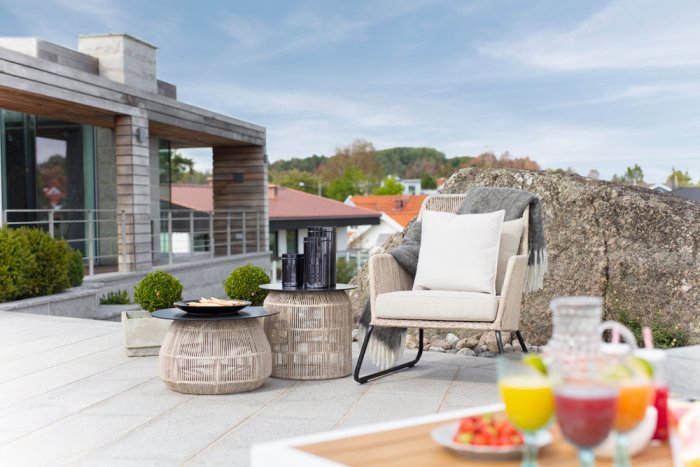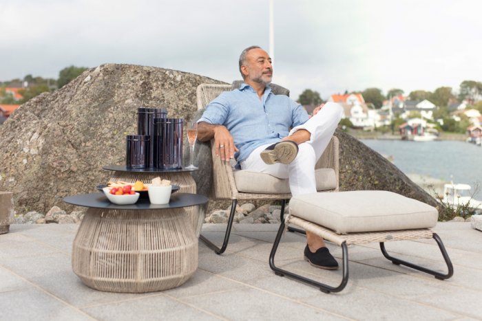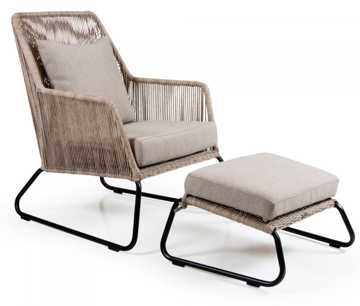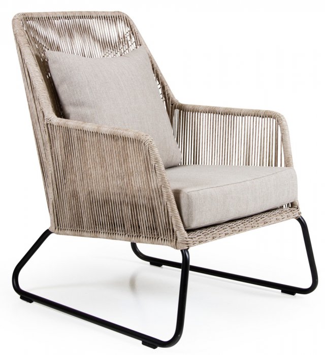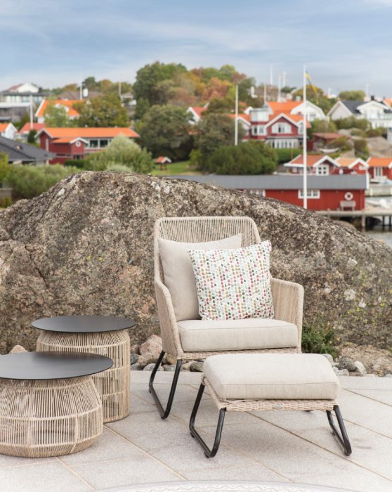 Midway är en exklusiv och elegant loungefåtölj från Brafab. Den har en modern design med sin twistade konstrotting i kombination med de nätta benen i svartlackad metall. De matchande dynorna är tillverkade i slitstarkt och praktiskt olefintyg och erbjuder Midway en underbar sittkomfort. Du kan välja mellan två färger på konstrottingen som då har matchande färg på sina dynor. Missa inte den snygga stolen i Midway serien.