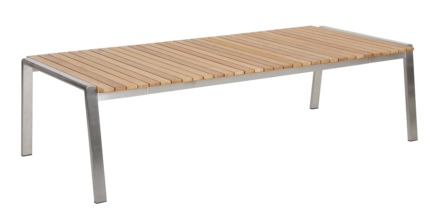 Naos är en loungegrupp med rena linjer och tidlös design i en modern tappning. Den låga sitthöjden förstärker känslan av modern loungestil. Blandningen av material är spännande, rostfritt stål och teakdetaljer på armstöden och bordsskivan. Riktigt sköna dynor av högdensitetsskum med klädsel av fodrat olefintyg som gör dem vattenavvisande. Det här är en sittgrupp med snygga detaljer och vinklar för dem som älskar kombinationen av rostfritt stål och teak.